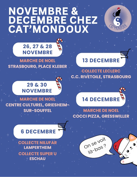 CAT’MonDoux est une association strasbourgeoise à but non lucratif uniquement composée de bénévoles, œuvrant depuis septembre 2008 dans la protection animale dans l’est de la France. Nous nous mobilisons afin de porter secours aux chats errants et promouvoir le respect de la vie animale.